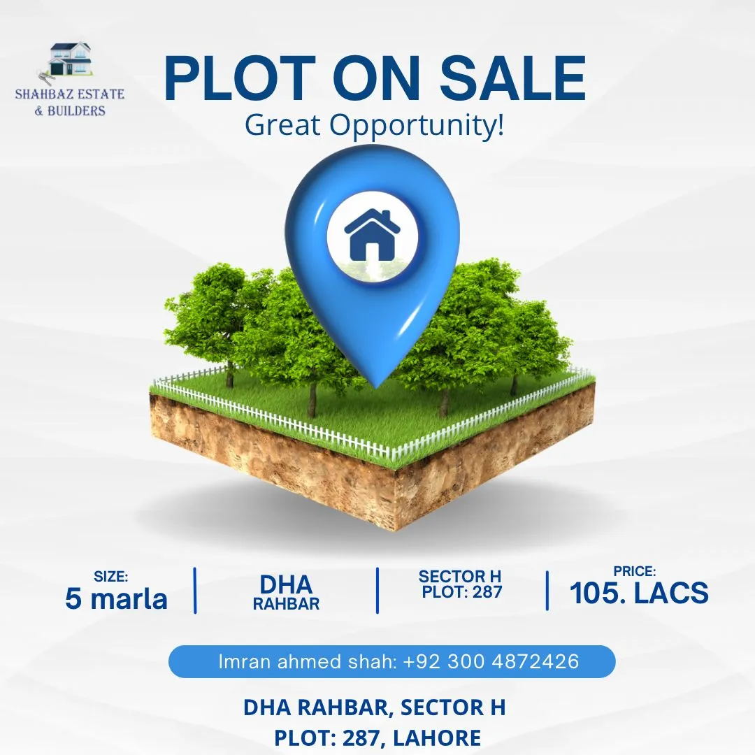 Plot location: DHA Rahbar, sector H plot: 287, Lahore